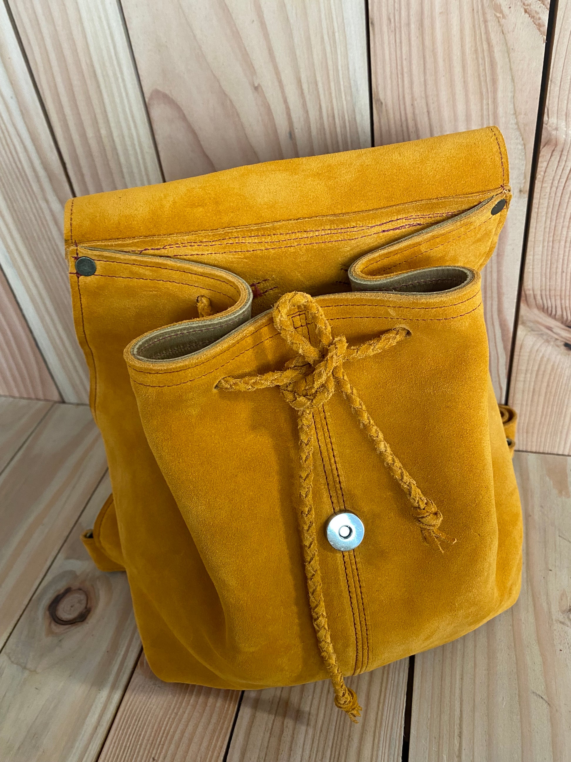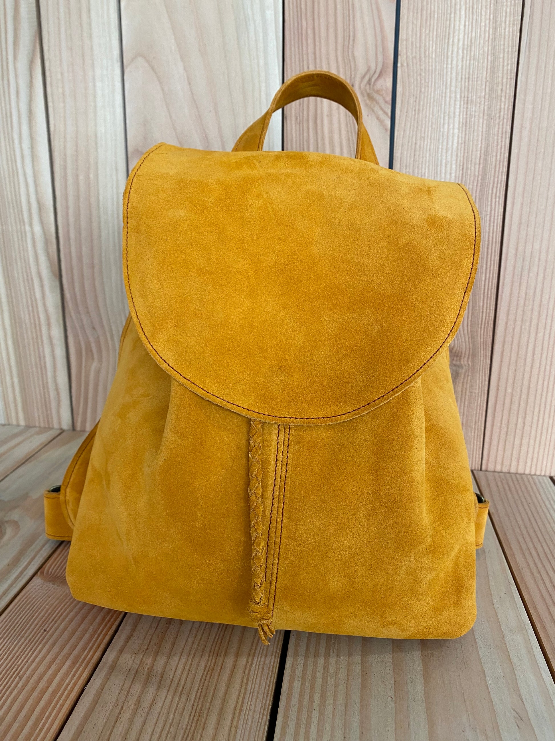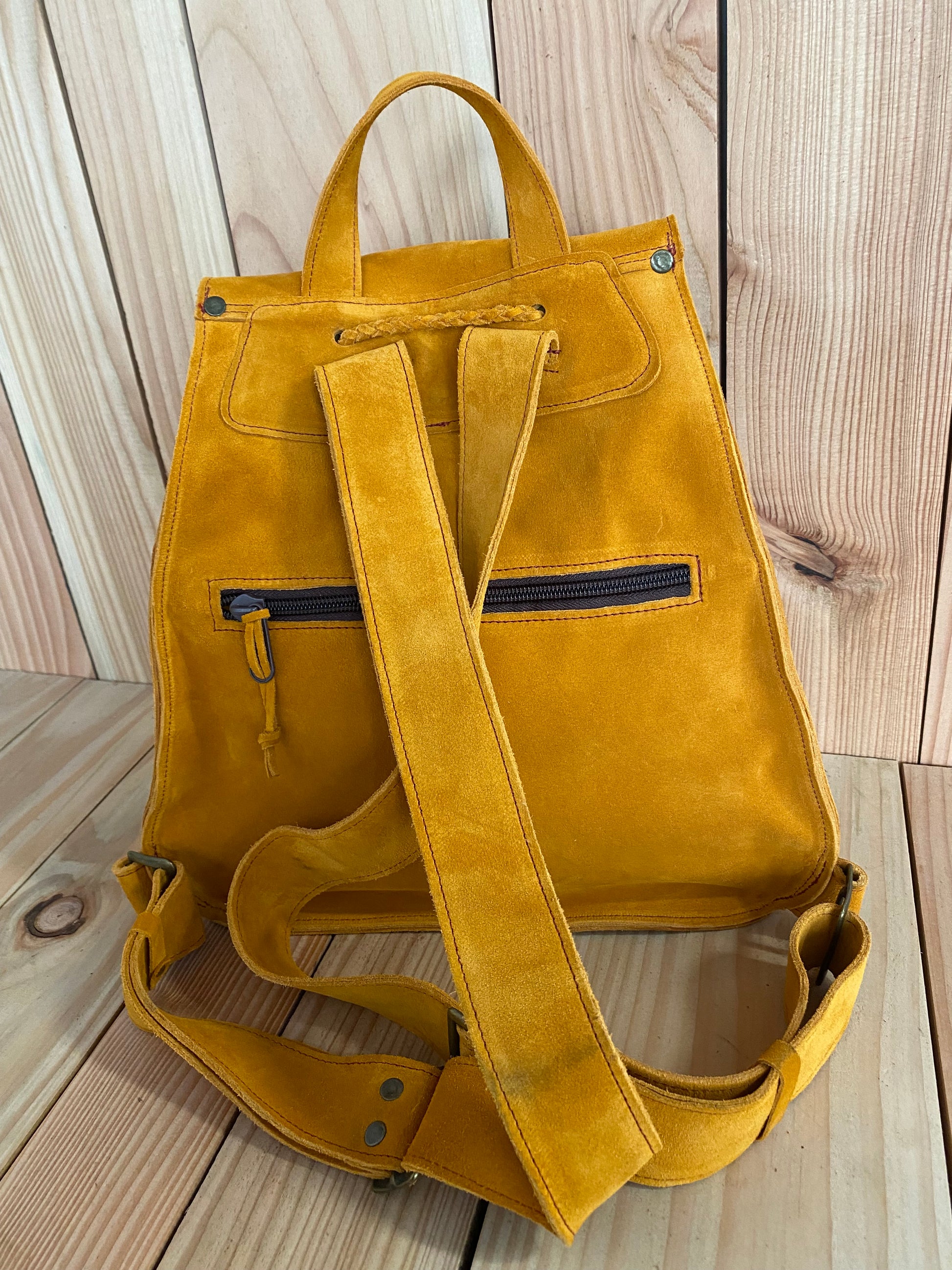 A stylish rucksack with a flap over a drawstring opening. There is a zip compartment on the back to keep sticky fingers away from particular valuable when in crowded places. The straps are really comfortable to wear and its a great every day size.